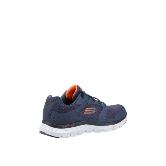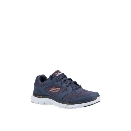 Flexibility and comfort give you the workout advantage in athletic style with the Flex Advantage 4.0 shoe. Smooth action leather and textured mesh fabric upper in a lace up athletic trainer with stitching accents. Air Cooled Memory Foam insole.