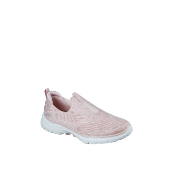 Shine bright in elevated comfort with Skechers GOwalk 6. This slip-on trainer features an athletic engineered flat knit upper, Air-Cooled Goga Mat insole, lightweight ULTRA GO cushioning midsole and high-rebound Hyper Pillar Technology for support.