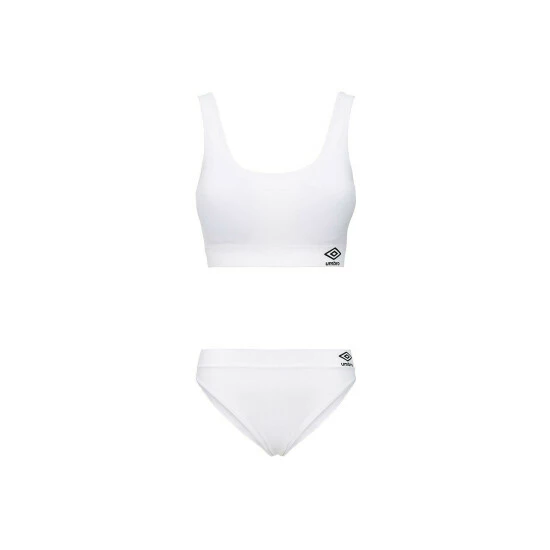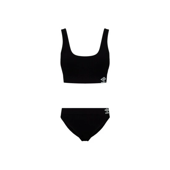Designed for maximum comfort this seamless bra and brief set is perfect for everyday wear. Simply styled with a scoop-neck bra and the bottoms in a low-rise brief cut. Finished with Umbro Diamond logo.