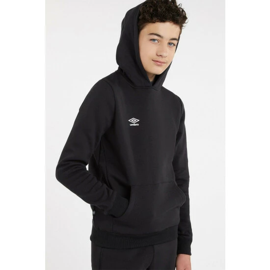 Take your kids comfort to a whole new level in the Club Leisure Junior Hoodie. Fashioned from an ultra soft cotton-rich blend, the ribbed cuffs and hem keep draughts at bay while the hoodie provides additional cosy shelter. Finished with a generous kangaroo pocket and the Umbro diamond logo printed on the chest.