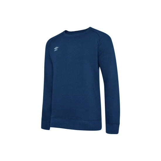 Kids can chill and relax in the Club Leisure Junior Sweat by Umbro. Uncomplicated in design but packing a punch in terms of comfort, this sweatshirt is made from an ultra soft cotton rich blend and finished with flatlock seams to the ribbed cuffs, collar and hem. Featuring the Umbro diamond logo printed on the chest and on a tab at the cuff.