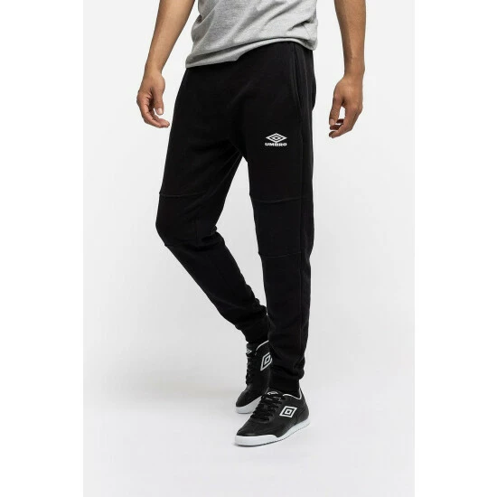 The Umbro Diamond Skinny Jog Pants offer a comfortable classic style in a contemporary slim-leg cut, with the front knee pads adding a touch of utilitarian style. Made from a comfortable cotton/poly loop-back sweat with an adjustable waistband that hides the inner drawcord and elasticated ribbed cuffs, these relaxed joggers also feature handy side slip pockets and a single welt pocket to the rear. The Umbro Diamond logo is featured as a raised print on the leg. Whether you’re in the mood for being energetic or chilling out, these joggers have you covered.