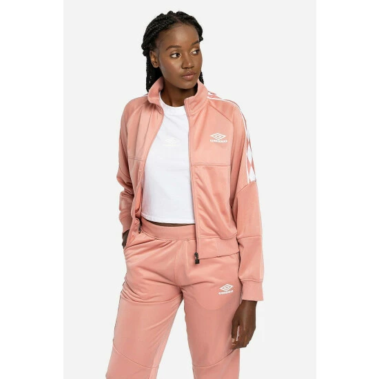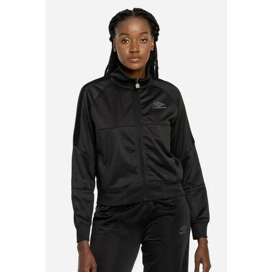 Up-dated from the archive this Diamond Taped Tricot Sports Jacket takes you from street to sport without breaking a sweat. Ideal as a throw on layer, the high-neck stand-up ribbed collar and woven tape detail running down the arms add an authentic sport-style dimension. Built from a classic smooth finish tricot fabric in a panelled design with zip side pockets this lightweight jacket will be a handy addition to your casual wardrobe edit. Perfect for layering, you can also wear with the matching jogger pants for a complete sport-style look. Finished with the Umbro Diamond logo featured in matte print to chest.