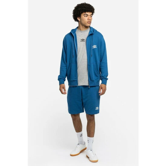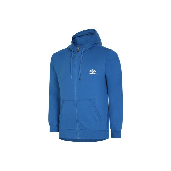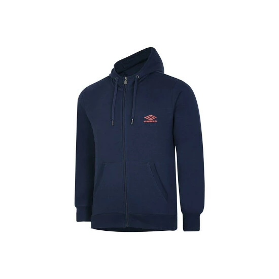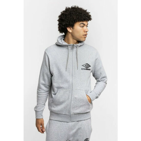 The Umbro Diamond Zip Through Hoodie ticks all the right boxes for this signature wardrobe style. Made from a breathable cosy, cotton-rich jersey, the scuba-style stand-up collar and adjustable drawstring hood will help keep you warm on chilly days. Styled in a classic fit with a full-length zip for a relaxed easy feel, with comfortable ribbed cuffs and waistband and two kangaroo-style pockets at the front. The iconic Umbro diamond featured in a raised print on the left of the chest completes the look.