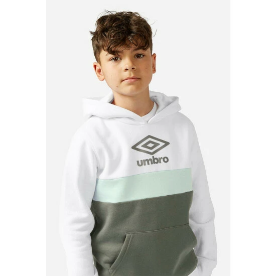 Take his chillout time to whole new level in this Colour Block Hoodie, sporting the iconic Umbro Diamond in a high-build print for maximum impact. Styled in a relaxed, regular fit in cotton-rich loop-back sweat fabric with a cosy fully-lined hood and kangaroo-style patch pockets for the ultimate comfort level. Pair this casual hoodie with the matching joggers or shorts for a wardrobe game-changer.