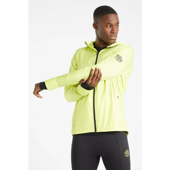 Lightweight and durable, the Pro Training Elite Lightweight Jacket delivers high performance to keep you hitting your training targets. Made from diamond ripstop finished with a durable water repellent treatment to protect you from the elements, the inner stretch power mesh provides the ultimate comfort factoring, working hard to wick sweat away from your body, while edges are bound to reduce friction and stretch jersey cuffs provide a snug, smooth finish. The adjustable hood, which can be packed away when not needed, is designed with a detachable hydrophilic mesh snood, giving you options for warmth depending on the weather. Styled with raglan sleeves to enhance your range of movement, the form-fitting, angled forward side seams conceal two zip pockets, providing a handy place to store your small valuables or essential energy supplies. Finished with reflective Pro Training logo to the sleeve and 360° reflective strip to the back. Made in part using sustainable materials.