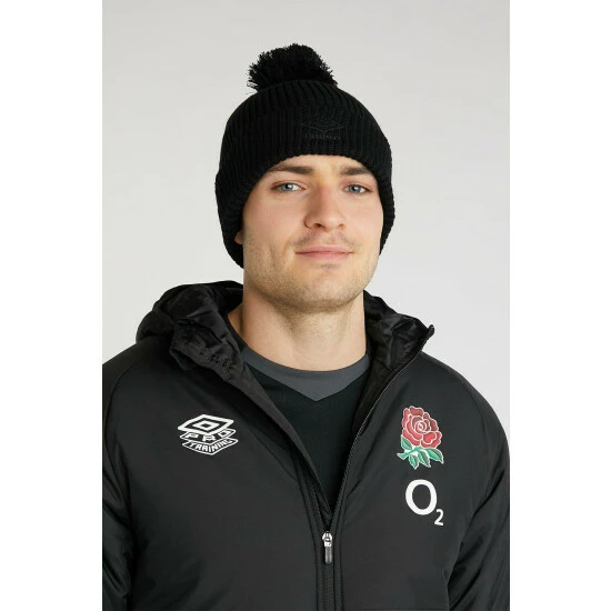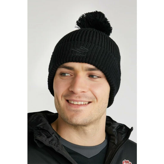Super wearable and in a classic beanie style the RFU Bobble Beanie Hat is given the blackout treatment, fashioned in a washed monochrome chunky knit with a snug turnover and featuring the must have bobble to boot. Adorned with the club crest and Umbro Diamond logo embroidery to the front and rear to finish.