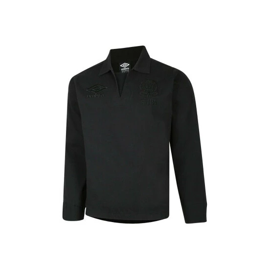 The iconic Umbro Drill Top, given the blackout treatment in this stylish RFU edition. Made from pure cotton, heavyweight twill and treated with a special heavy laundered wash for a comfortable, relaxed look, while the classic shirt neck collar is finished with a stretch cotton rib inserted into the placket. The club crest and Umbro Diamond logo are featured to the chest in tonal, raised embroidery.
