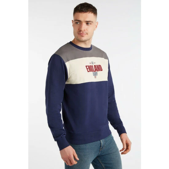Sure to become your ‘go to’ weekend pullover, the RFU Colour Block Crew Neck Sweater, has a relaxed look and feels fantastic, thanks to the pure cotton, brushed-back jersey fabric. Featuring a classic ‘England Rugby’ screenprint, this sweatshirt is made with a ‘cut and sew’ technique to give the colour-block look. The ribbed cuffs, hem and neck benefit from a touch of elastane to help them keep their shape.