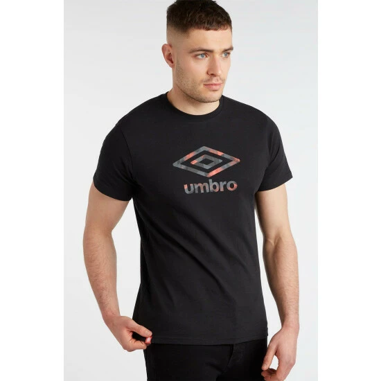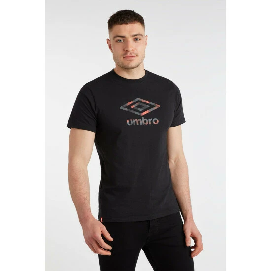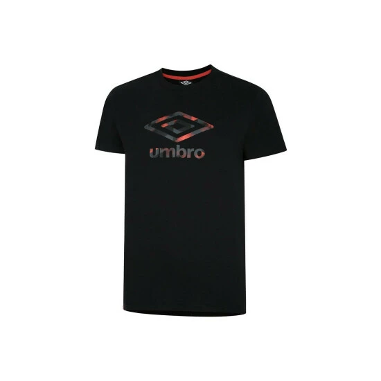 Subtly displaying the RFU print through the iconic Umbro logo, this relaxed fit crew neck t-shirt will add a stylish up-date to your weekend wardrobe. Finished with a ribbed crew neck enhanced with elastane, a matte plastisol print to front and the Rose woven loop tab at the hem.