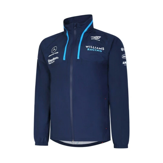 Come rain or shine, you will be fine in the Williams Racing Performance Jacket, designed to brush off harsh elements with ease thanks to the special icon weave fabric finished with a 2.5 waterproof layer coating for added protection. This functional rain jacket is styled with part elasticated cuffs for secure fit and features a zip out hood finished with taped seams that add a graphic detail to the style, while the hood’s elasticated side panels give a secure fit. The front zipper is 2-way and waterproof and is complete with an inner zip guard for comfort and two concealed side zip pockets over handy, secure storage for small valuables. Double chest pockets with 2-way entry and heat transfer Umbro, Williams Racing and Sponsor marks, completes the team look.