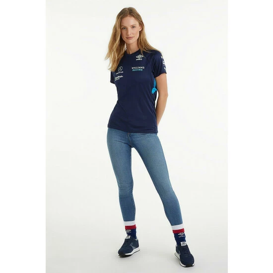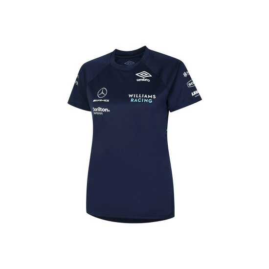 Delivering on precision standards, the Women’s Williams Training Jersey is the perfect top to get you in to the racing spirit. Made from a high-performance micro-eyelet fabric, the raglan sleeves add to the comfort factor while the dropped shaped hem gives a flattering finish. This stylish crew neck is packed full of detail, with contrast jacquard graphic underarm panels, and a contrast panel at the left hem, and the Umbro, Williams Racing and Sponsor marks adding the final sporty finish.